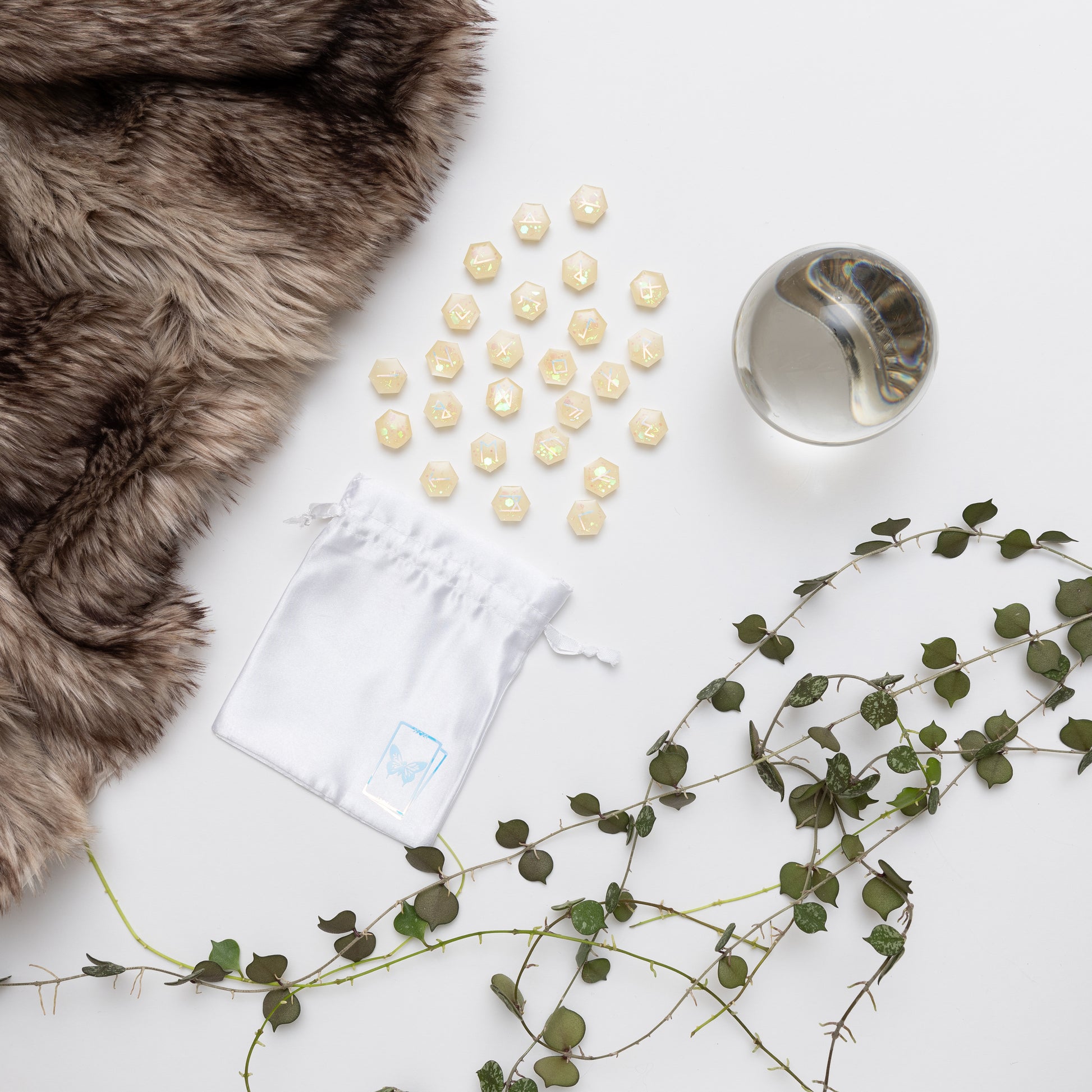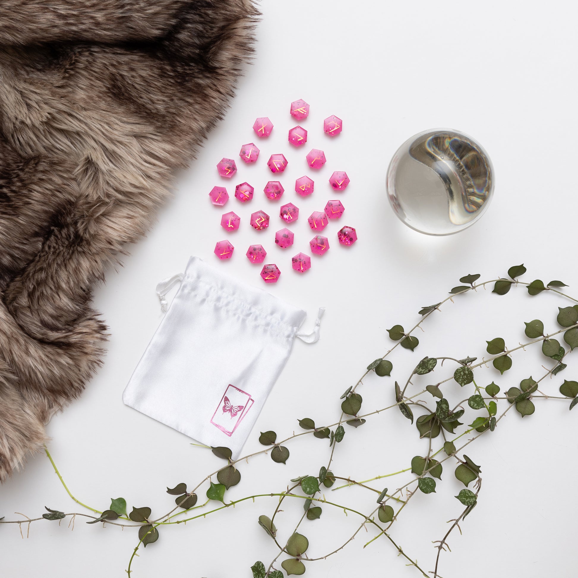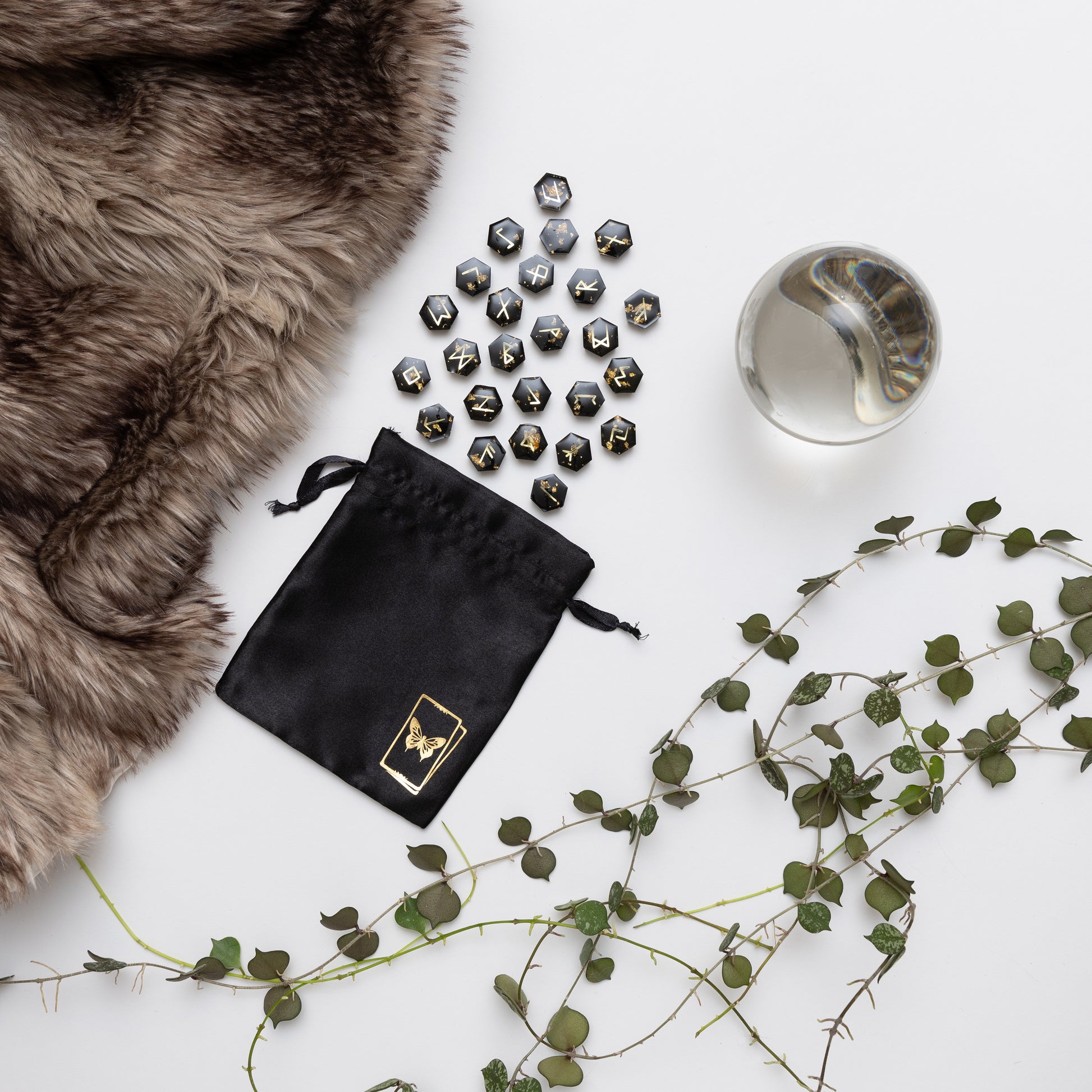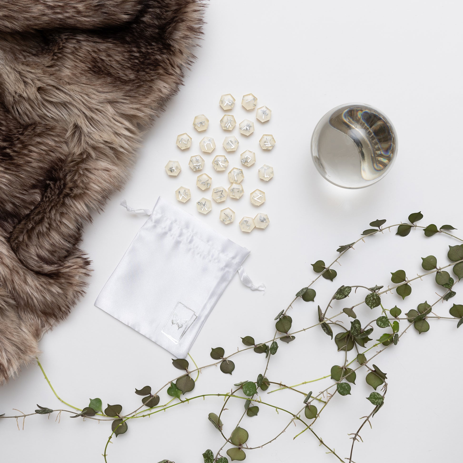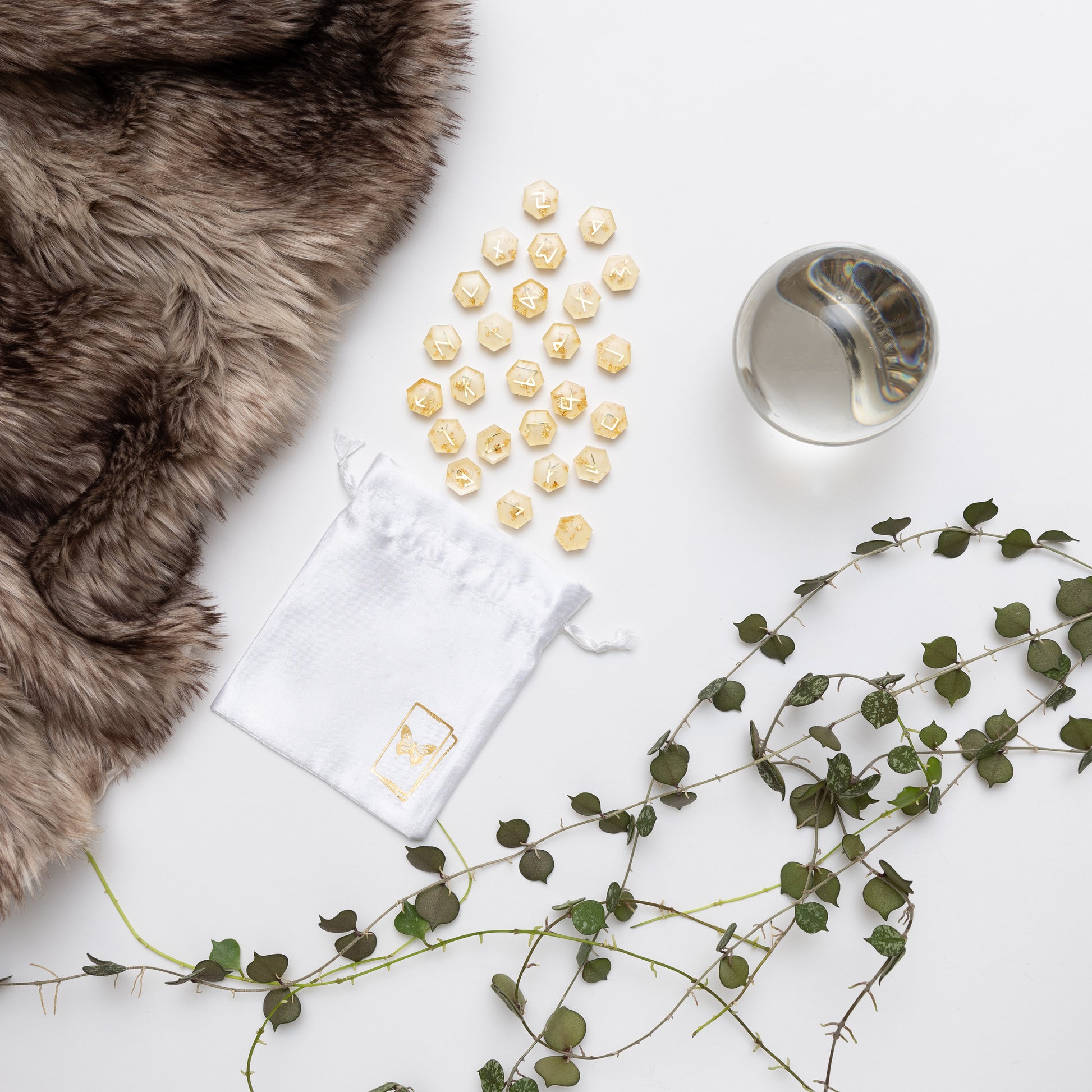 This set includes 25 Norse Runes, Guidebook, and Drawstring Bag.