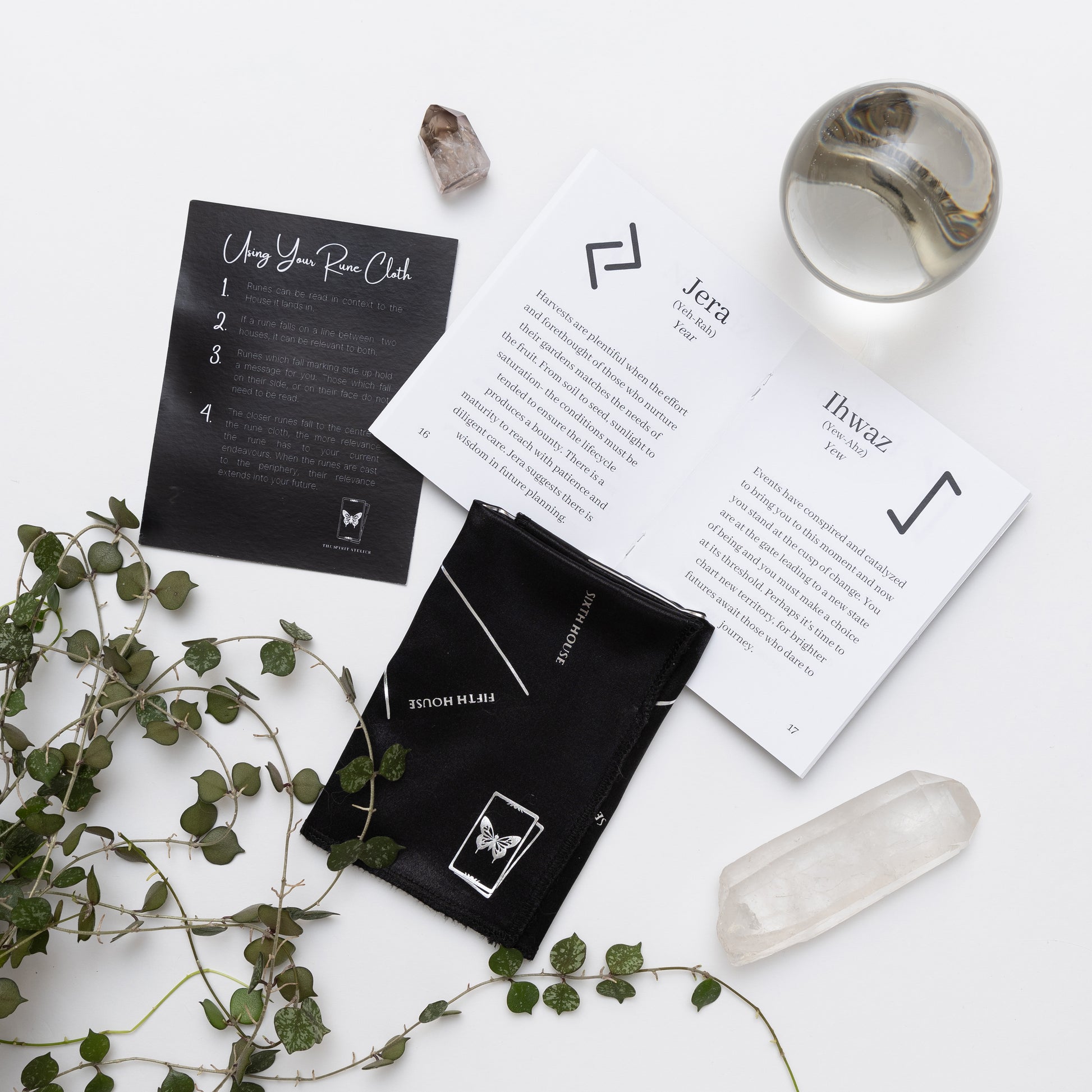 This set includes 25 Norse Runes, Casting Cloth, Guidebook, Index Card and Drawstring Bag